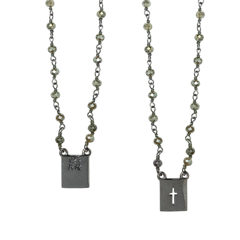 Escapulário Rosário feito manualmente em Prata 925, com pedras naturais Pirita.